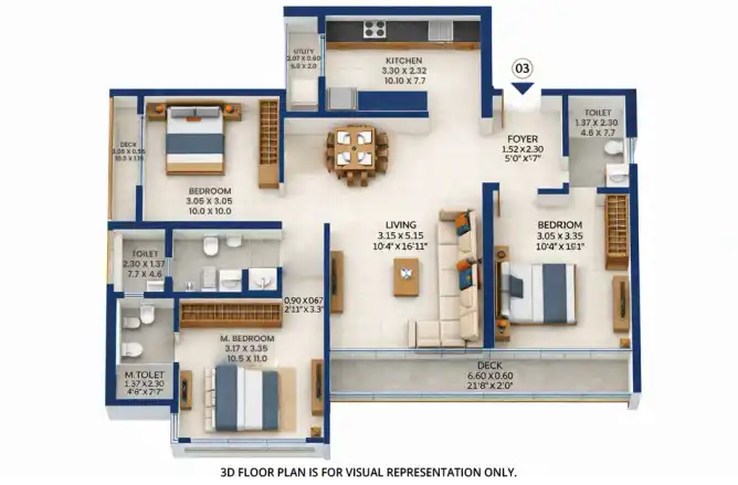 Each home is crafted for a spacious and luxurious lifestyle, featuring private decks and expansive 270-degree corner windows. These allow residents to enjoy breathtaking views of Sanjay Gandhi National Park and Yeoor Hills right from the comfort of their home.