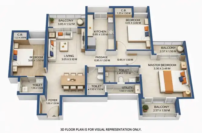 The project offers spacious 2 BHK and 3 BHK apartments.