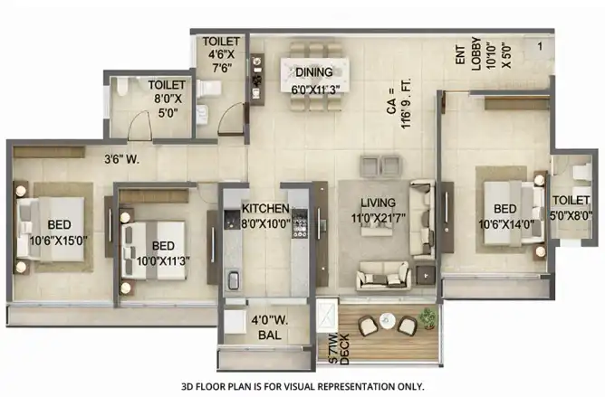Homes feature a grand 10.9 ft. ceiling height, spacious sundecks, vitrified flooring, and large aluminum sliding windows for natural light.