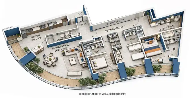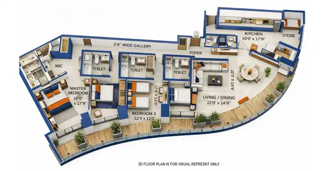 • The project offers massive 3 BHK and 4 BHK apartments.