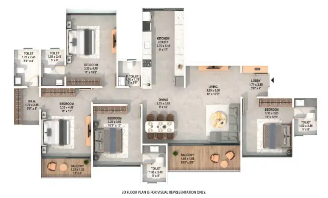 The project offers 3, 4 BHK apartments.