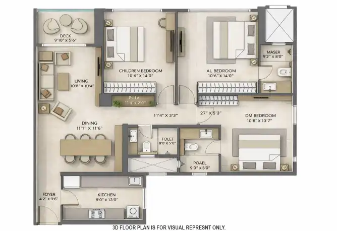 Piramal Raynav offers 2 BHK, 2.5 BHK, 3 BHK, and 3.5 BHK apartments.