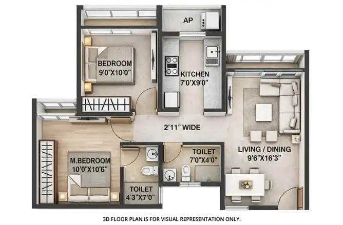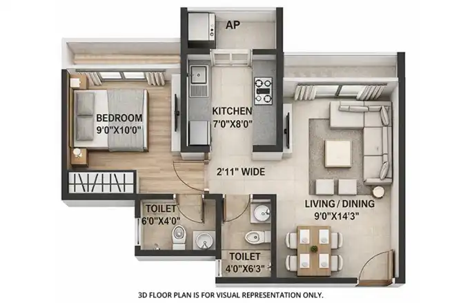 Sai Proviso Gemstone offers a configuration of 1 BHK and 2 BHK apartments.