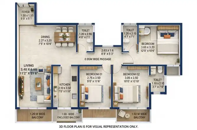 Luxurious 2 BHK, 3 BHK, and 4 BHK residences are available in the project.