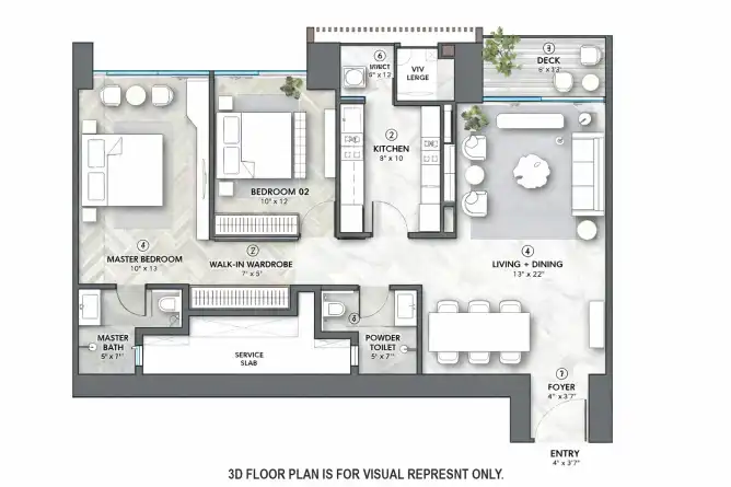 • Floor-to-ceiling windows for panoramic views of the Arabian Sea and city skyline.