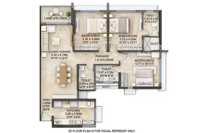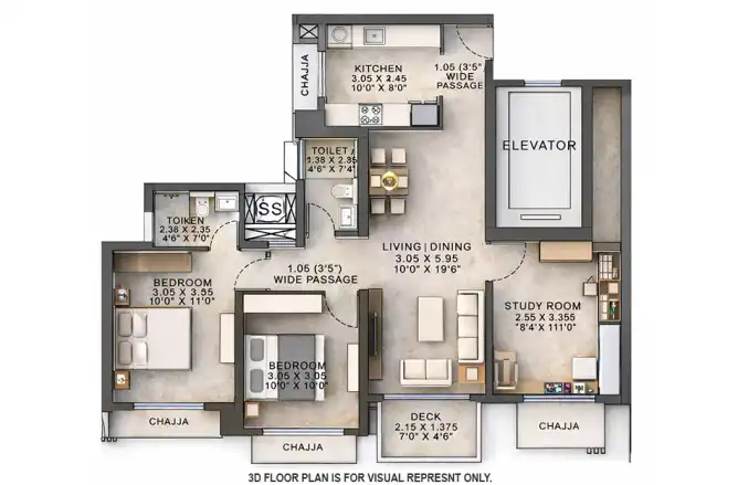 The project offers massive apartments having a carpet area from 584 sq. ft. to 892 sq. ft.